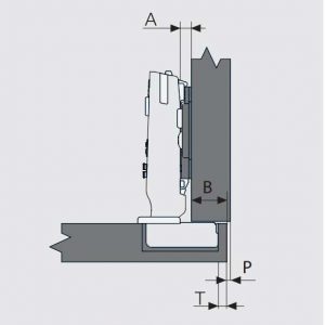 - Oheisessa kuvassa mitta P kuvastaa kaapin oven ja rungon välistä mittaeroa