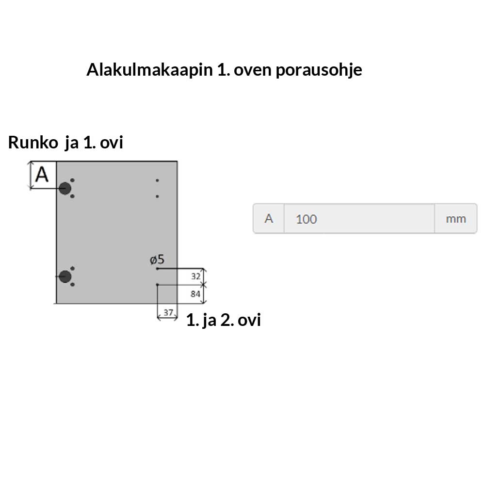 - kiinnitys toiseen oveen 8mm käpytapeilla (sisältyvät toimitukseen)