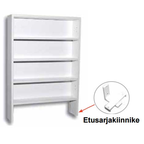 Ns. maustekaappi tuuletinhormin eteen. Lisävarusteena saatavilla etusarjan kiinnikkeillä voidaan etusarjan kiinnittää niin, että etusarja on tarvittaessa helppo myös irroittaa.
