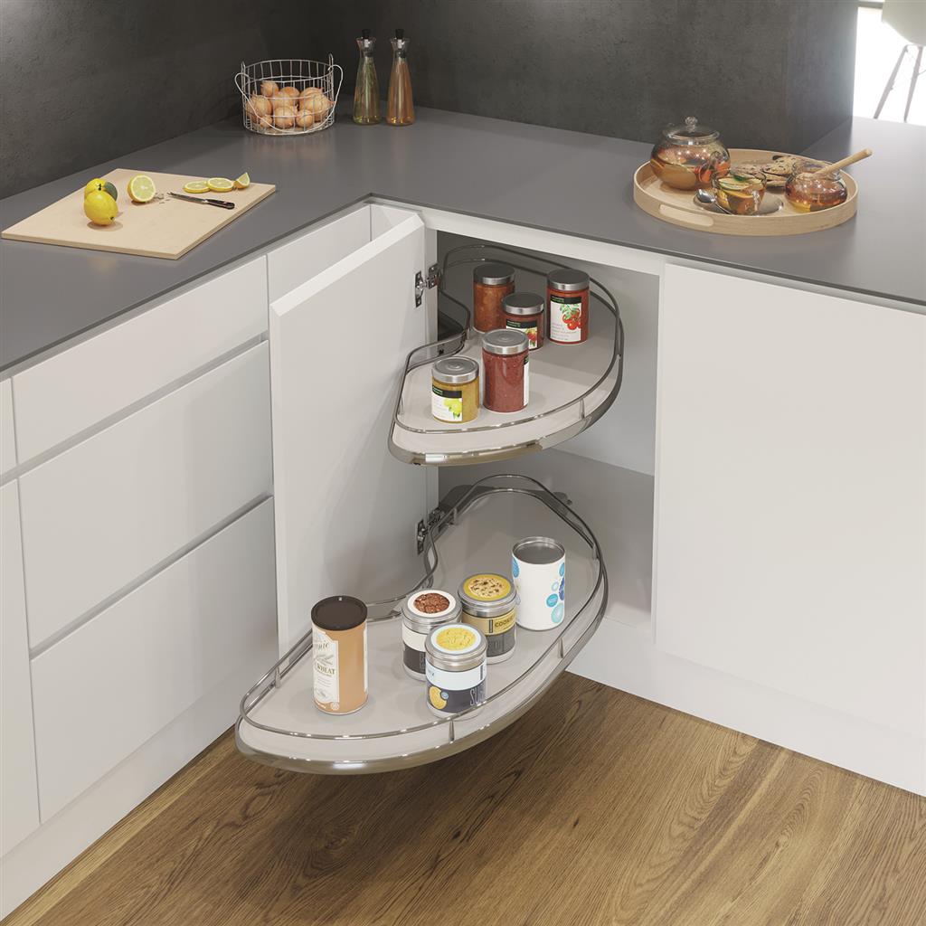 Tee keittiöstäsi järjestelmällisempi ja tyylikkäämpi uusimman hyllyjärjestelmän avulla. Tämä 1000 mm leveisiin kaappeihin suunniteltu ratkaisu yhdistää helppokäyttöisyyden ja nykyaikaisen muotoilun, mikä tekee siitä erinomaisen valinnan niin moderniin kuin perinteiseen keittiöön.