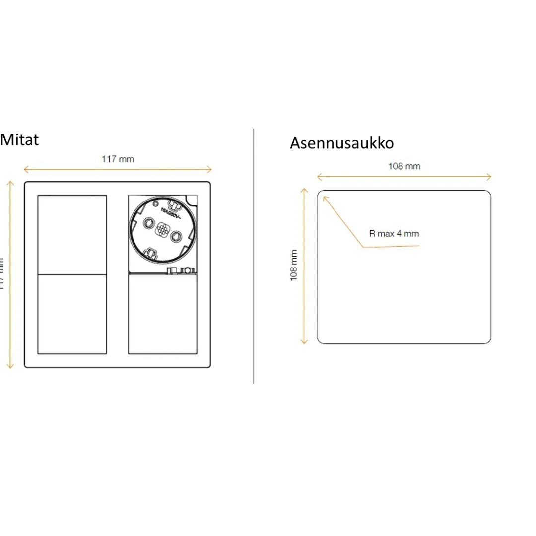 | Mitat (P x L x K) | 117 × 117 × 43 mm (millimetri) |