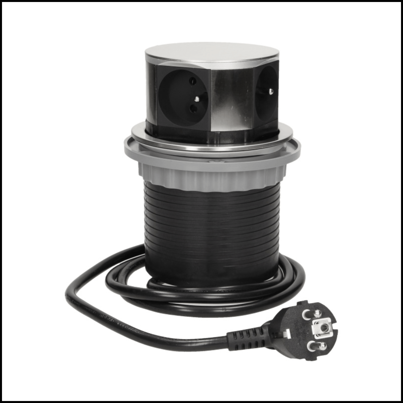TETRAPOP on tyylikäs ja monikäyttöinen pop up -pistorasia, joka integroidaan suoraan työtasoon, pöytään tai huonekaluun. Se on erinomainen ratkaisu työpisteille, neuvottelutiloihin, keittiöihin tai esimerkiksi sohvan runkoon, kun sähköpiste halutaan piilottaa katseilta.