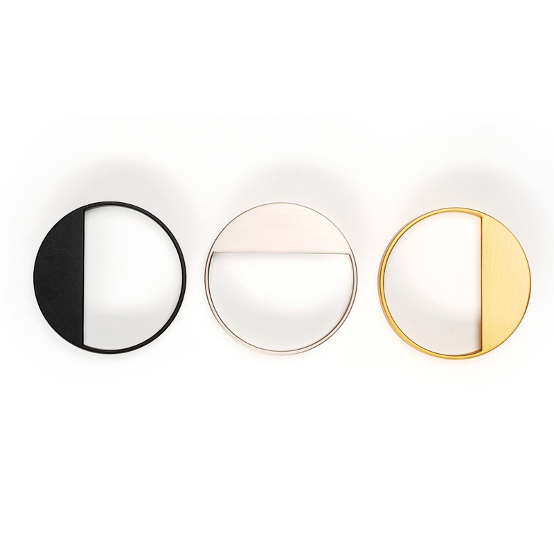 Näyttävä pyöreä kuppivedin, halkaisija 90 mm, reikäväli 64 mm, korkeus 17 mm. Väri matta musta.