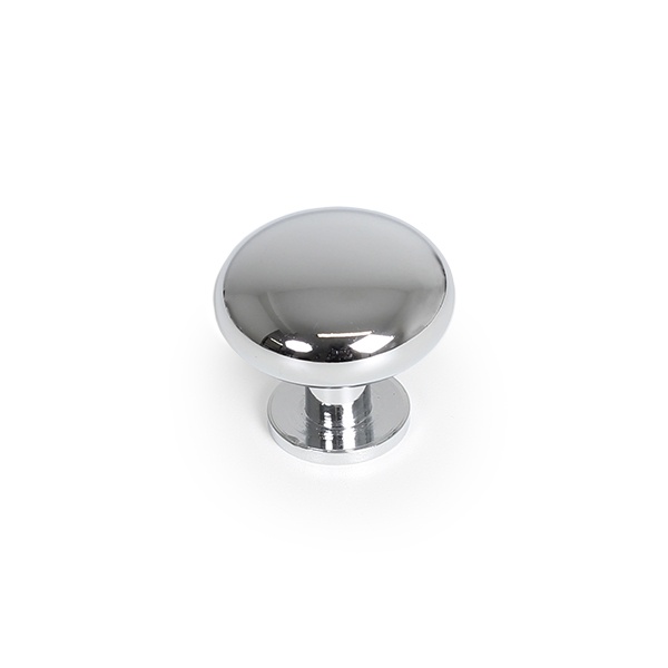 Nuppivedin kromattu. Pyöristetyn nuppivetimen syvyys on 28 mm ja Ø 31 mm. Materiaali pinnoitettu samakki.