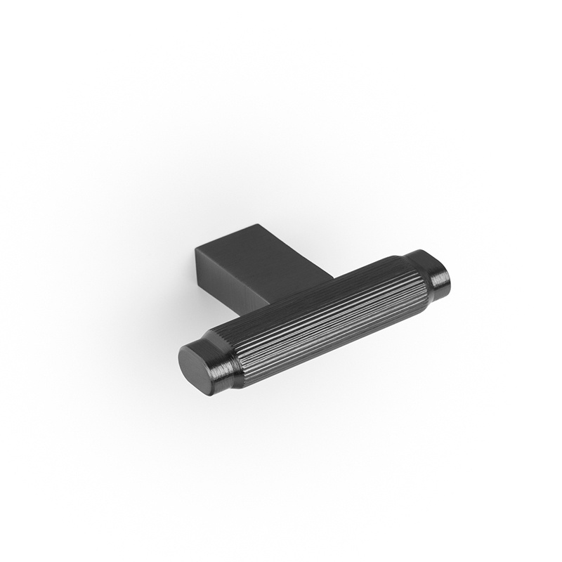 Uritettu T-nuppi Brooklyn, leveys 55 mm ja korkeus 37 mm. Materiaali alumiini. Väri musta nikkeli.