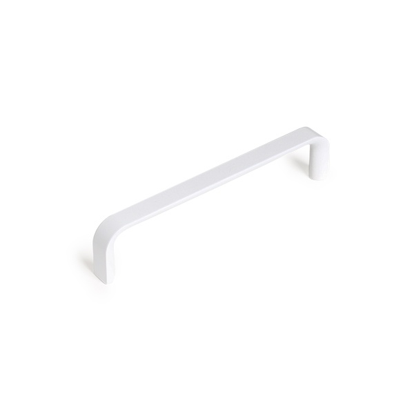 Uusi kaareva, sulavalinjainen vedin Beta Mini 128 mm reikäjaolla. Vetimen kokonaisleveys 135 mm, korkeus 11 mm ja syvyys 30 mm. Materiaali pinnoitettu samakki, väri matta valkoinen.